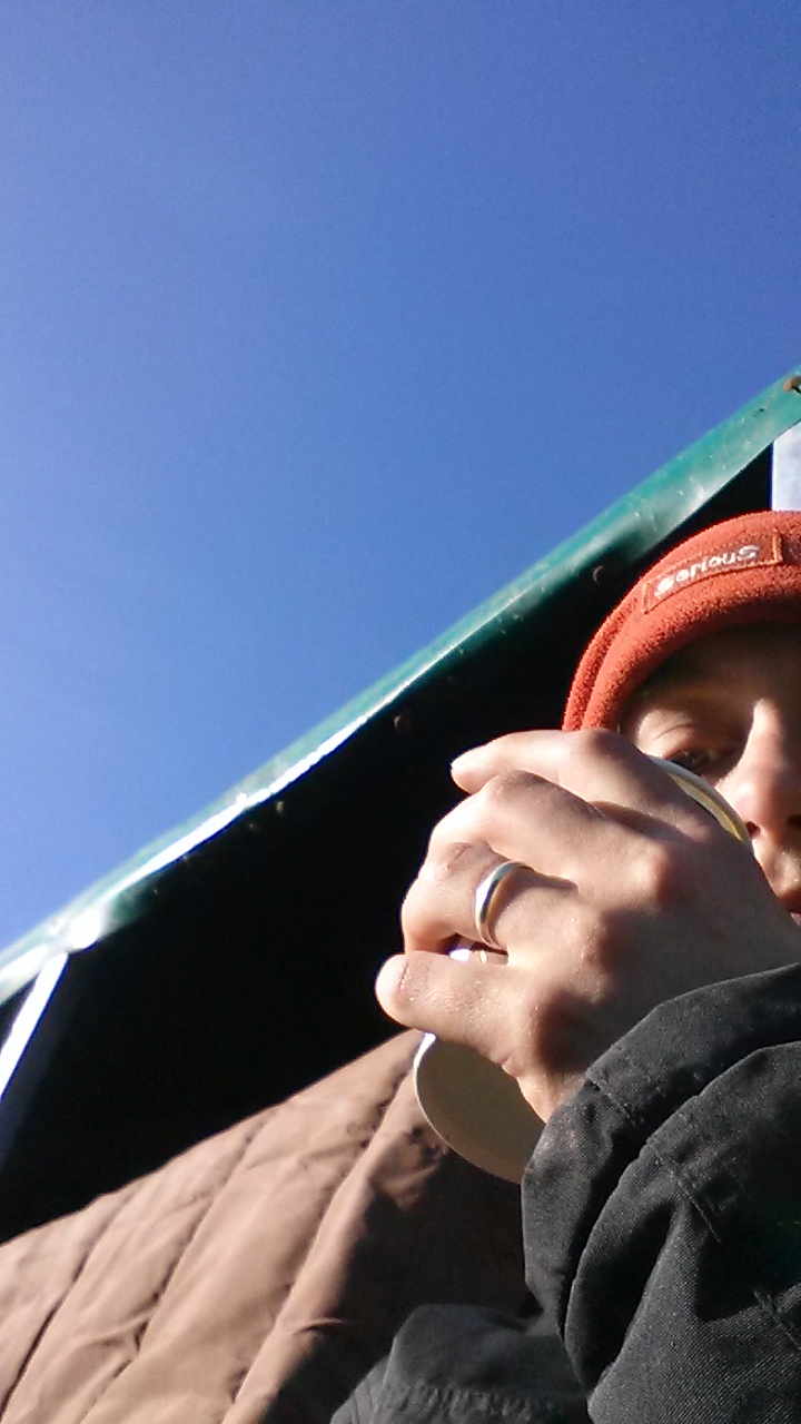 Monday morning coffee in the sun outside of Hubert K's stable!